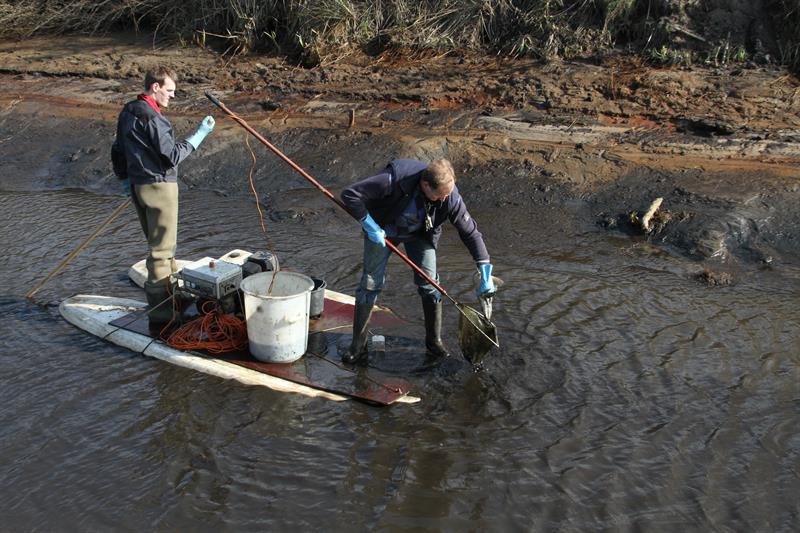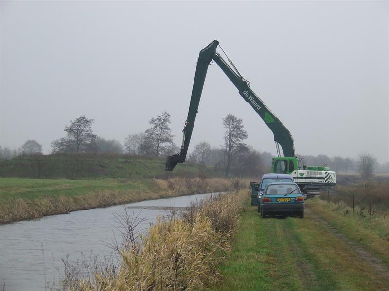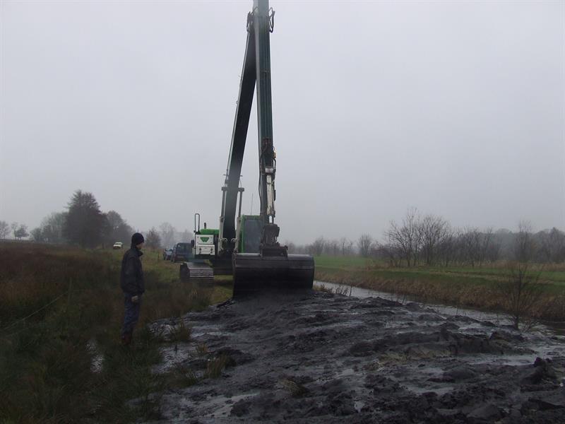 uitbaggeren, slopen stuwen en leegvissen Aa.