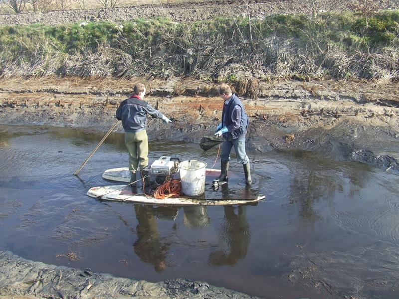 uitbaggeren, slopen stuwen en leegvissen Aa.